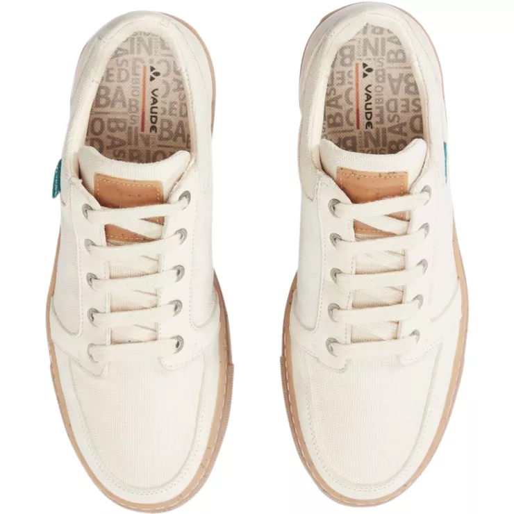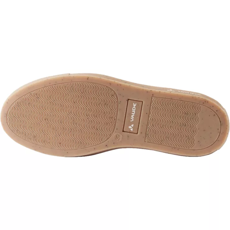 Innensohle: herausnehmbare, anatomisch geformte Einlegesohle, Naturfasern mit Naturlatex, Außensohle: recycelter Naturkautschuk mit Mohnsamen